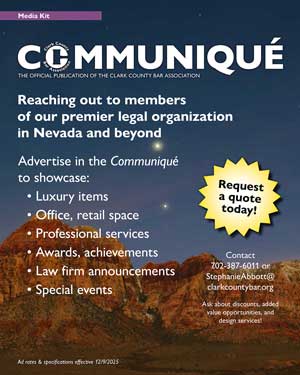 © 2021 Clark County Bar Association (CCBA). All rights reserved. No reproduction of any portion of this issue is allowed without written permission from the publisher. Editorial policy available upon request.